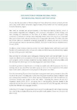 Overview – Inspection Report 166 Inspection of Broome Regional Prison